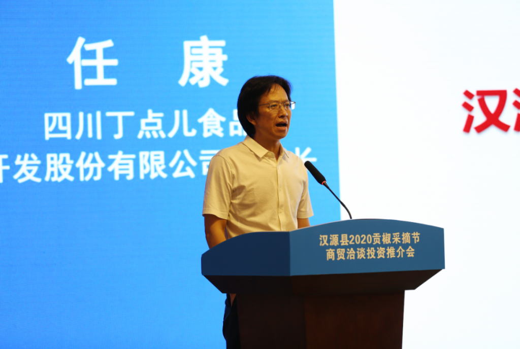 ? ? ? ?在漢源縣2020貢椒采摘節(jié)商貿(mào)洽談投資推介會(huì)上,任康董事長(zhǎng)發(fā)表主題為《漢源花椒創(chuàng)新制品研發(fā)與新工藝應(yīng)用》演講,重點(diǎn)分析了漢源花椒創(chuàng)新制品研發(fā)與新工藝應(yīng)用,講述了漢源花椒在丁點(diǎn)兒股份的四次更新迭代歷程。