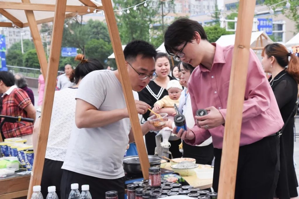 ? ? ?為展示企業(yè)實力,加強企業(yè)與人才的交流,活動現(xiàn)場,丁點兒股份和川麻人家專門設置展位。展位上,爽麻樂鹵料、炒飯醬、牛肉面底湯……豐富的產(chǎn)品吸引了一批又一批人員駐足詢問。用爽麻樂清真調味料現(xiàn)場烹飪的一道道菜品香味四溢,給大家留下深刻印象。
