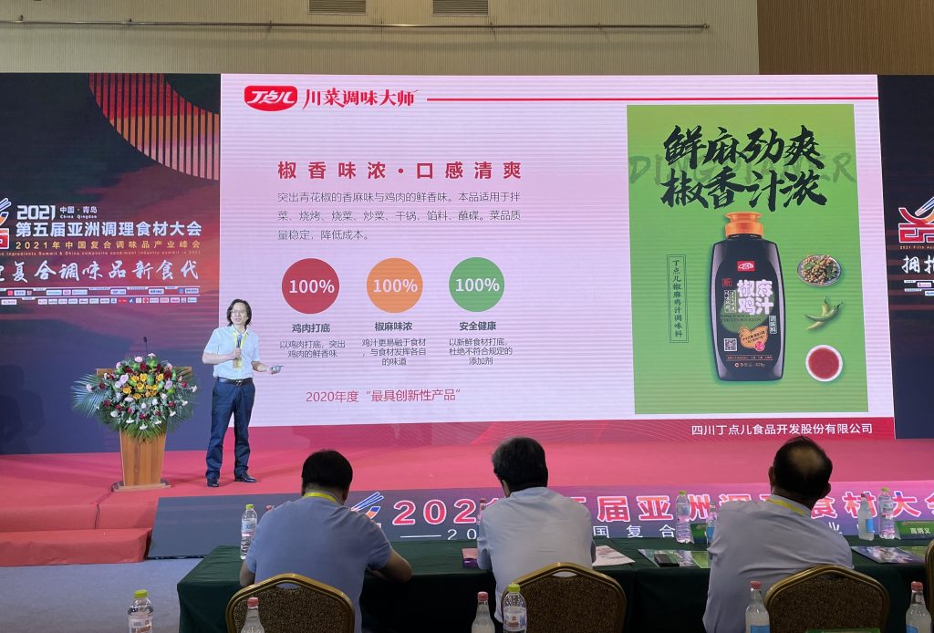 ? ? ? ?在“擁抱復(fù)合調(diào)味品新時(shí)代——2021年中國(guó)復(fù)合調(diào)味品產(chǎn)業(yè)峰會(huì)”上,丁點(diǎn)兒股份董事長(zhǎng)任康獲得“2021中國(guó)復(fù)合調(diào)味品產(chǎn)業(yè)創(chuàng)變?nèi)宋铩睒s譽(yù)稱號(hào),丁點(diǎn)兒老壇酸菜醬調(diào)味料榮登2021中國(guó)調(diào)味品爆品榜單。