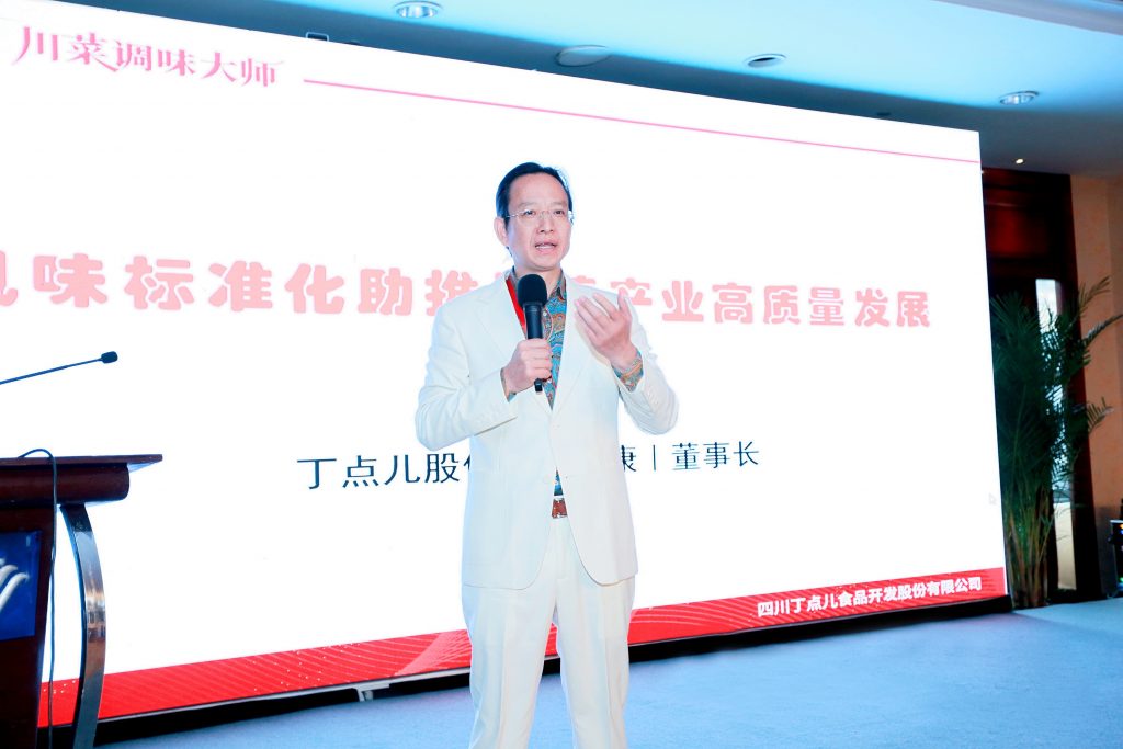 ? ? ? ?大會期間,來自澳大利亞、韓國等部分國家駐成都領(lǐng)事館代表、相關(guān)國際友好城市負(fù)責(zé)人、海外川菜領(lǐng)域?qū)<覍W(xué)者,以及國內(nèi)美食行家、川菜品牌企業(yè)代表等嘉賓齊聚一堂。作為川味標(biāo)準(zhǔn)化復(fù)合調(diào)味料行業(yè)引領(lǐng)者,丁點兒股份董事長任康應(yīng)邀出席,并在“2021川菜企業(yè)家大會暨世中餐聯(lián)川菜委工作年會”環(huán)節(jié)以“風(fēng)味標(biāo)準(zhǔn)化助推川菜產(chǎn)業(yè)高質(zhì)量發(fā)展”為主題作了分享。