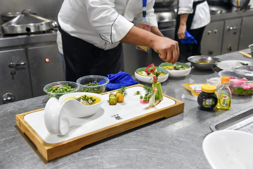 ? ? ? ?本次比賽旨在推動傳統(tǒng)烹飪技藝的傳承與發(fā)展,加強企業(yè)間的溝通與交流。賽場上,選手們各顯神通,切絲、切片、碼味、炒制,紛紛拿出自己的看家本領;展示區(qū),銀針絲、糖粘花仁、水煮魚等一道道已完成的菜品紛紛呈現(xiàn),引人注目。這不僅是一次比賽,更是大家切磋技藝、展示水平的舞臺,競爭中,大家互相學習、爭相進步。