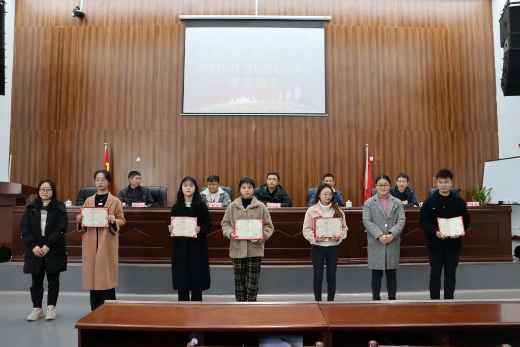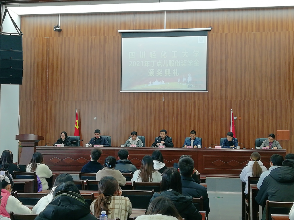 ? ? ? ? 12月21日,2021年“丁點兒股份獎學金”頒獎儀式在四川輕化工大學宜賓校區(qū)舉行,學校生物工程學院院長趙志峰、黨委副書記馬懿、副院長馮志平及丁點兒股份技術中心常務副主任羅強祖、人資行政部副部長曹宇等出席了活動。