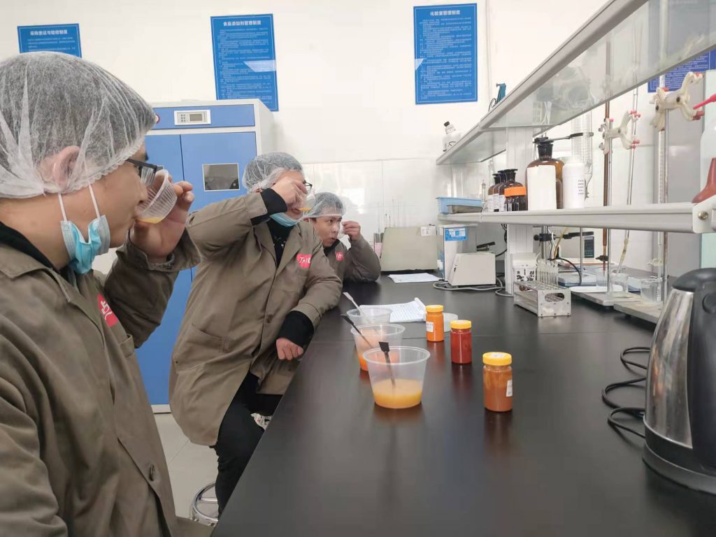 現(xiàn)場品控人員正進(jìn)行產(chǎn)品感官品評