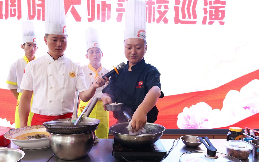 ? ? ? ?為扎實推進產(chǎn)教深度融合,拓寬校企合作深度,盡早讓烹飪學子感受川菜調(diào)味的魅力,切身了解企業(yè)對人才的需求標準。近日,丁點兒股份應用培訓部副部長、川菜調(diào)味大師陳證宇受邀到成都新東方高級技工學校彭鎮(zhèn)校區(qū)開展丁點兒川菜調(diào)味大師課首站巡演!