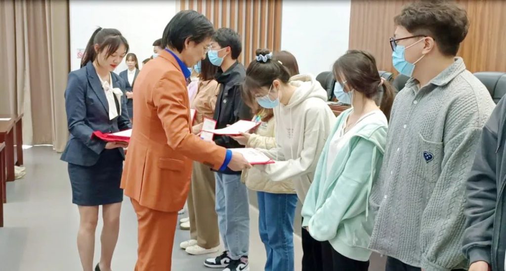 頒獎(jiǎng)儀式上,丁點(diǎn)兒股份任康董事長(zhǎng)為獲獎(jiǎng)的優(yōu)秀學(xué)生頒發(fā)了獎(jiǎng)學(xué)金證書,并對(duì)獲獎(jiǎng)同學(xué)表示祝賀。