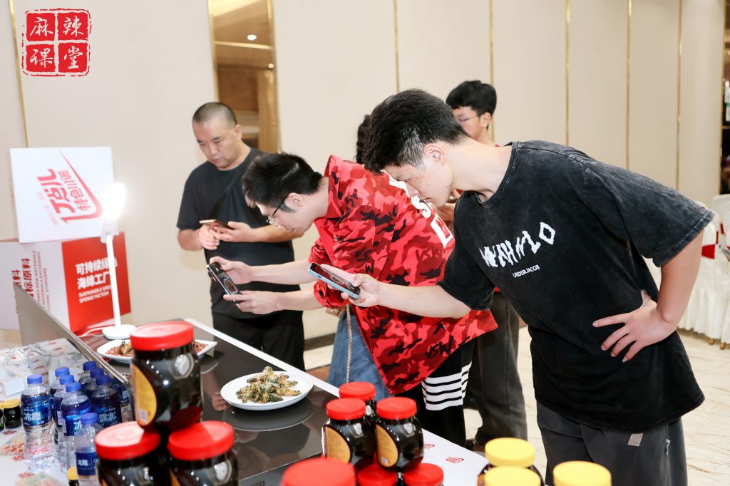 丁點兒高品質特色川調產品展示區(qū),藤椒油、干鍋醬、椒麻雞汁、金湯酸菜醬等豐富的產品吸引了眾多參會人員駐足詢問了解,其口味穩(wěn)定,快速出餐,可優(yōu)化菜品成本,有效提高翻臺率等優(yōu)勢給大家留下了深刻印象。在品嘗過用丁點兒藤椒油制作的藤椒手撕雞后,大家更是贊不絕口,一致好評。