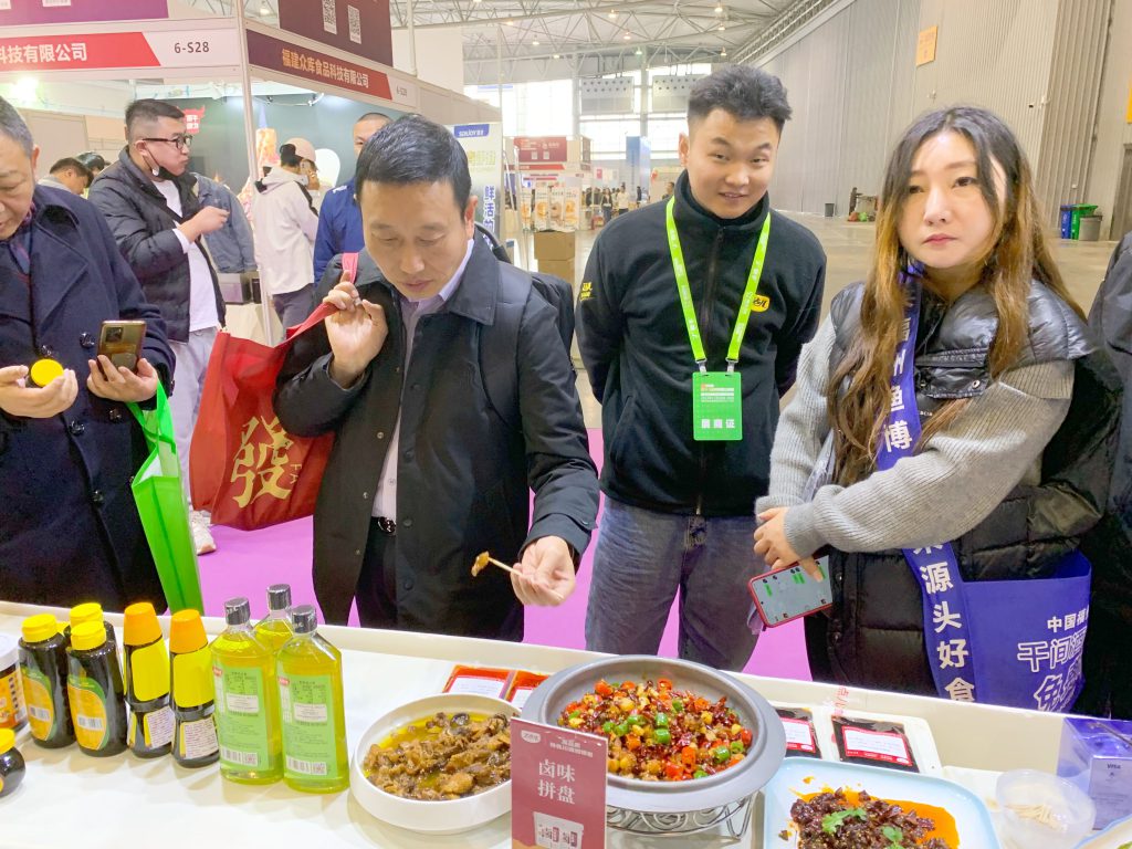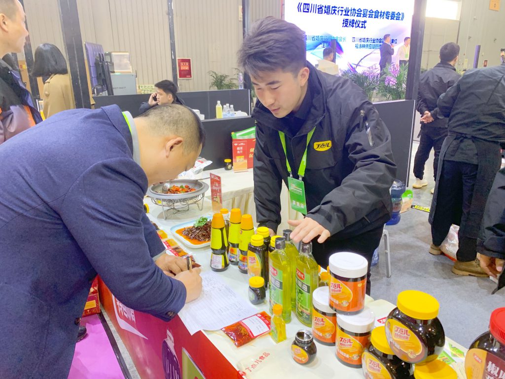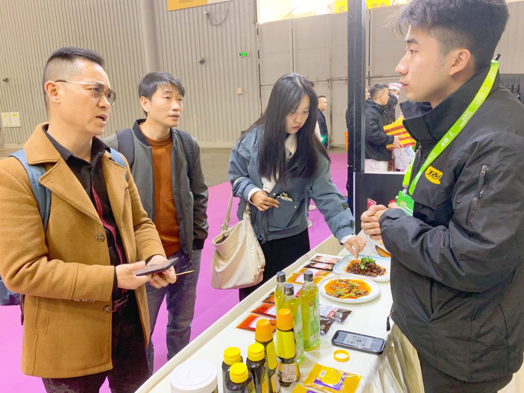 用丁點(diǎn)兒干鍋醬、椒麻雞汁、老壇酸菜醬等烹制的干鍋掌中寶、川式椒麻雞、酸菜魚片等菜品色香味俱全,為參展觀眾帶來了看得見、聞得到、吃得到的美食體驗(yàn)?,F(xiàn)場(chǎng)試吃后,許多觀眾紛紛向公司業(yè)務(wù)經(jīng)理咨詢、了解,尋求合作。