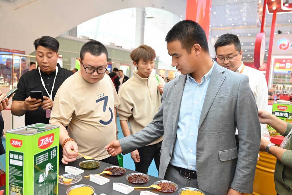 展會(huì)現(xiàn)場(chǎng),美食薈萃,美酒飄香,各種復(fù)合調(diào)味料、特色小吃、比賽菜品等琳瑯滿目,讓人流連忘返。