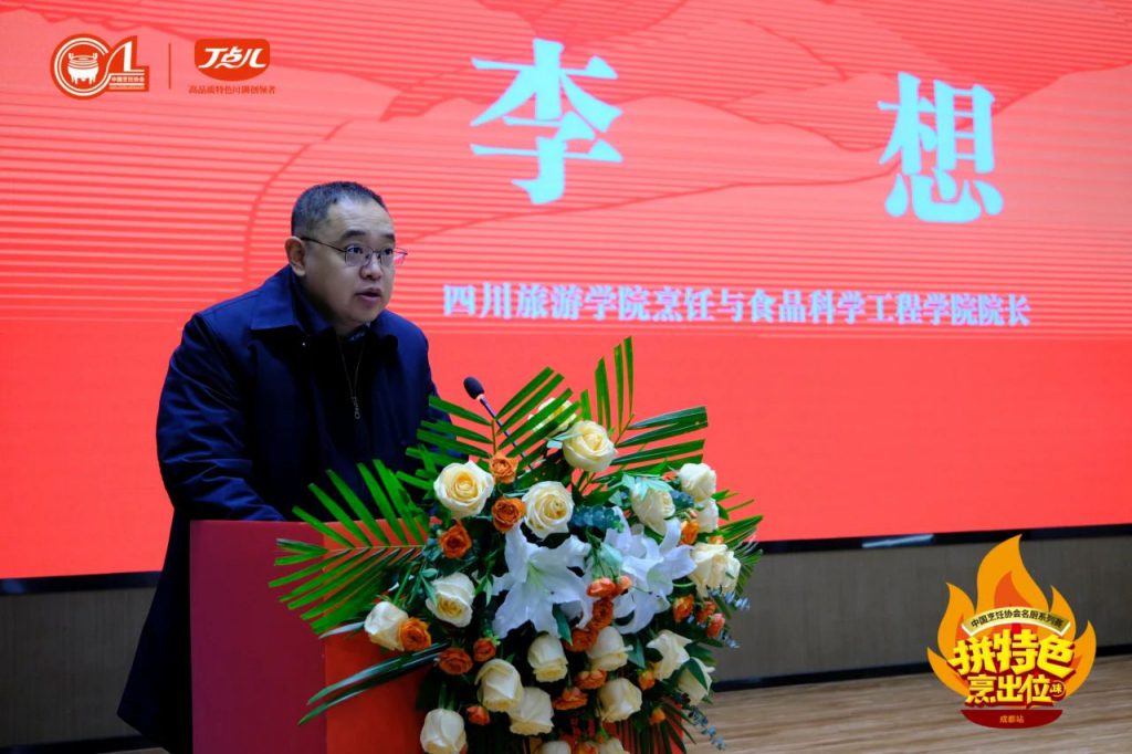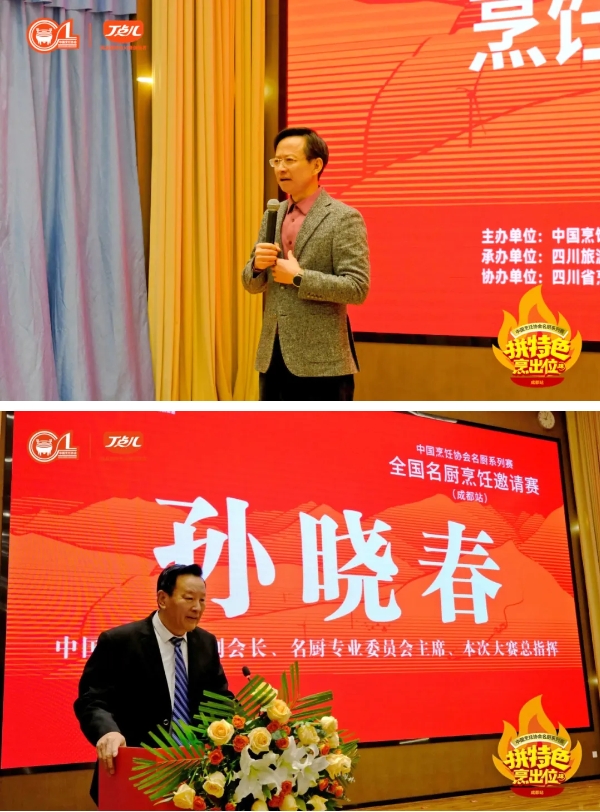 丁點(diǎn)兒食品董事長任康,中國烹飪協(xié)會(huì)副會(huì)長、名廚專業(yè)委員會(huì)主席孫曉春,四川旅游學(xué)院黨委常委、副校長王沖,四川省美食家協(xié)會(huì)會(huì)長麥建玲,四川省烹飪協(xié)會(huì)執(zhí)行會(huì)長高樸,四川省財(cái)貿(mào)輕化紡工會(huì)常委、成都市美食業(yè)工會(huì)主席王獻(xiàn)章,成都餐飲同業(yè)工會(huì)會(huì)長袁小然等相關(guān)領(lǐng)導(dǎo)出席了大賽開幕儀式,并紛紛登臺(tái)致辭,對(duì)本次大賽給予了高度評(píng)價(jià)與深切期望。