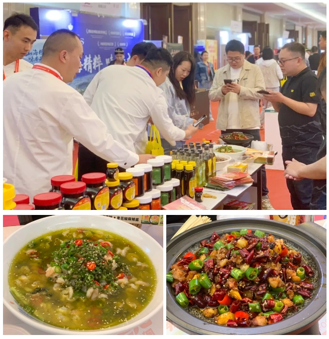 活動現(xiàn)場,丁點兒干鍋醬、藤椒油、青花椒麻辣醬、老壇酸菜醬等多款明星產(chǎn)品陳列突出搶眼,展位前人潮涌動,氛圍熱烈非凡。