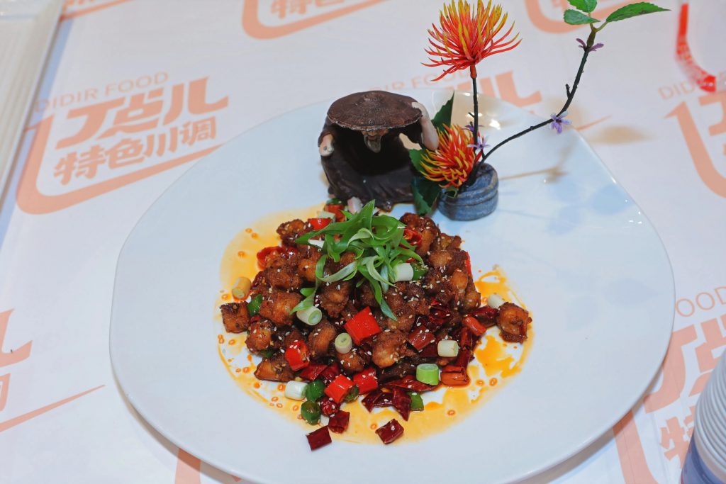 為讓嘉賓更直觀感受丁點兒產(chǎn)品的魅力,丁點兒菜品研發(fā)工程師應(yīng)用丁點兒干鍋醬、干鍋香、泡椒醬等特色川調(diào)烹制了干鍋椒麻掌中寶、青椒金醬蝦仁等風(fēng)味菜品供大家品嘗,贏得了嘉賓的一直肯定?!斑@道干鍋椒麻掌中寶,味道濃郁,外酥里嫩,根本吃不夠”“青椒金醬蝦仁清鮮爽口,椒麻十足,好吃!”
