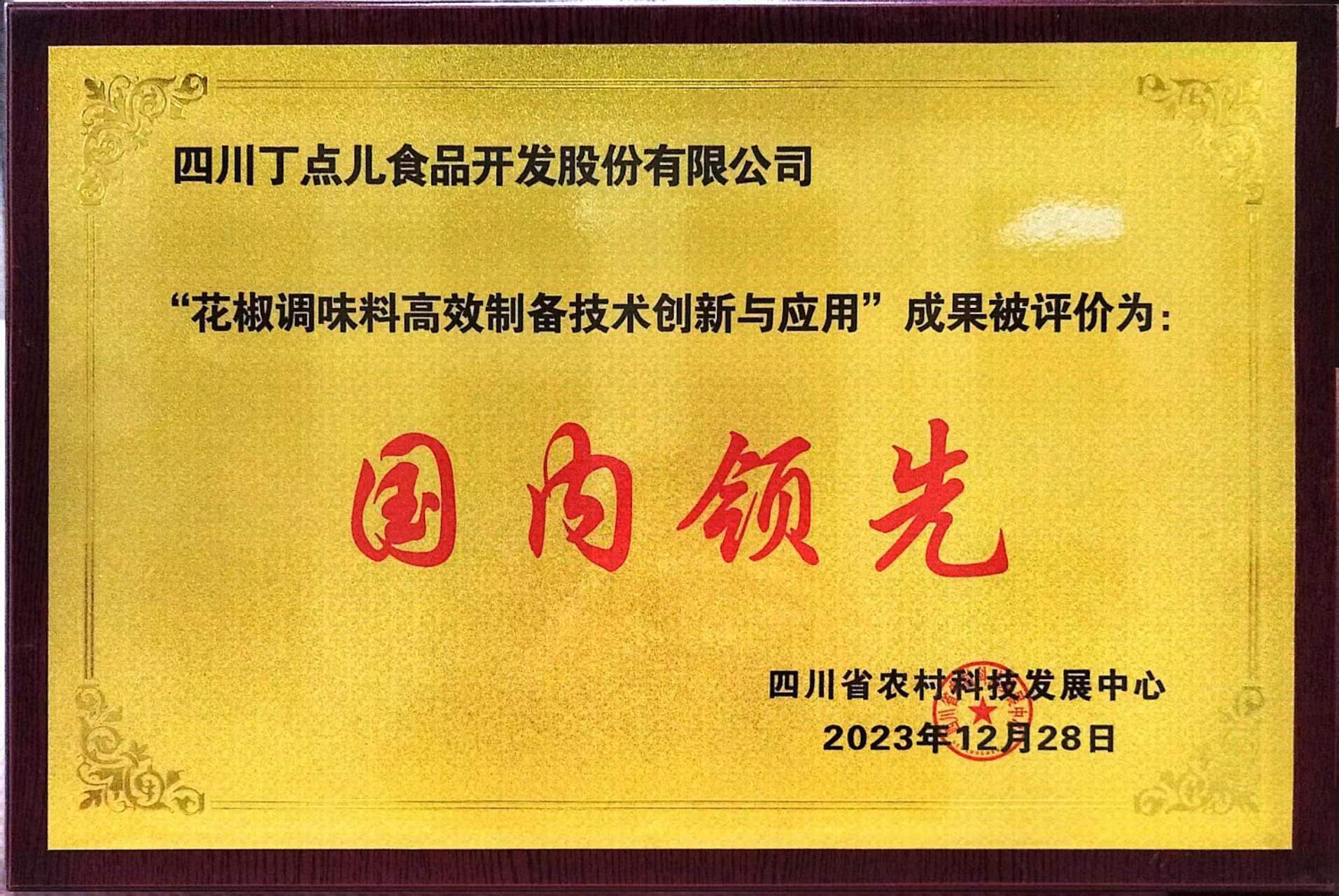喜訊!丁點兒食品“花椒調(diào)味料高效制備技術(shù)創(chuàng)新與應用”成果被評定為“國內(nèi)領(lǐng)先”