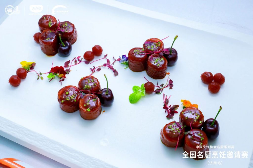 賽場上,參賽選手們?nèi)橥度?,從?jīng)典魯菜的精準(zhǔn)復(fù)刻到融合創(chuàng)意菜的驚艷亮相,從刀工火候的精妙掌控到擺盤藝術(shù)的極致追求,他們巧妙運(yùn)用大賽指定丁點(diǎn)兒高品質(zhì)特色川調(diào)產(chǎn)品,展現(xiàn)了當(dāng)代中國名廚的深厚功底與無限創(chuàng)意,刀光勺影間盡顯大師風(fēng)范。